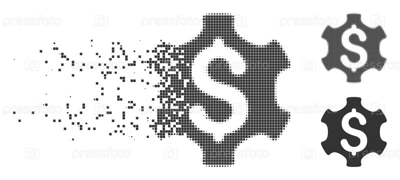 Растворенные финансовые настройки иконка пикселя с эффектом дезинтеграции.Включены полупикселированные и не поврежденные твердосерые версии