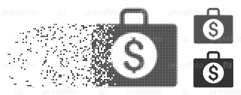 Растворенный бухгалтерский чехол с пунктирным иконой с эффектом дезинтеграции. полупунктированные и нетронутые целые серые версии. точки имеют форму прямоугольника