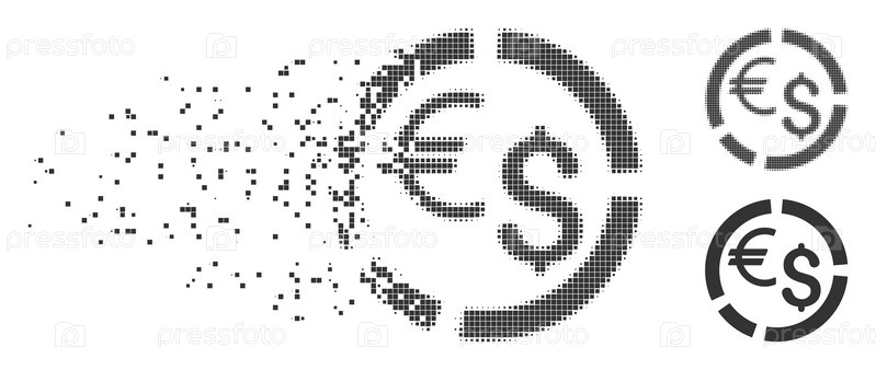 Диаграмма рассеянной валюты пунктирный значок с эффектом дезинтеграции. Полутон пикселированные и неповрежденные твердосерые версии. Пункты имеют прямоугольную форму