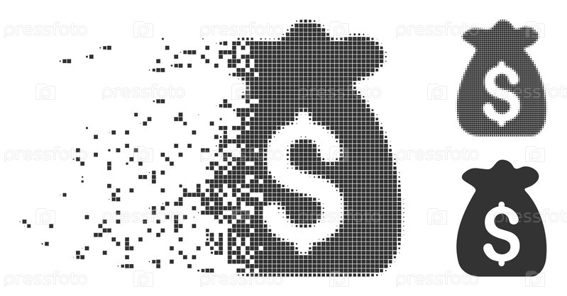 Дисперсированный пиксельный значок финансового капитала с эффектом дезинтеграции. полуточечные пунктирные и неповрежденные варианты целого серого цвета. точки имеют форму прямоугольника