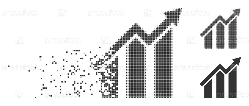 Дисперсированная пиксельная икона диаграммы роста с эффектом дезинтеграции. полуточечные пунктирные и неповрежденные варианты целого серого цвета. точки имеют форму прямоугольника