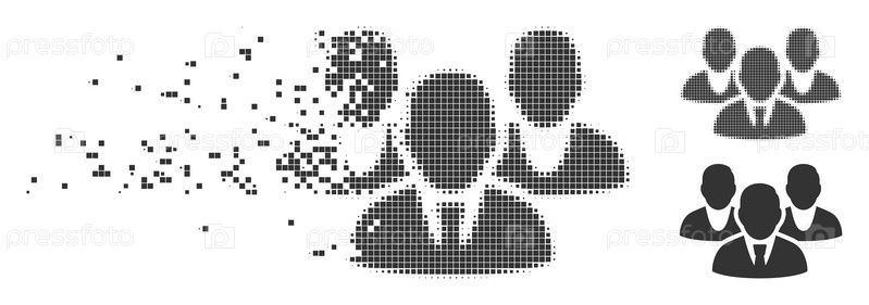 Рассеянный персонаж пунктирная икона с эффектом дезинтеграции. Полутон пунктирные и нетронутые целые серые версии. Пункты имеют квадратную форму. Клетки составлены в форме рассеянного персонажа