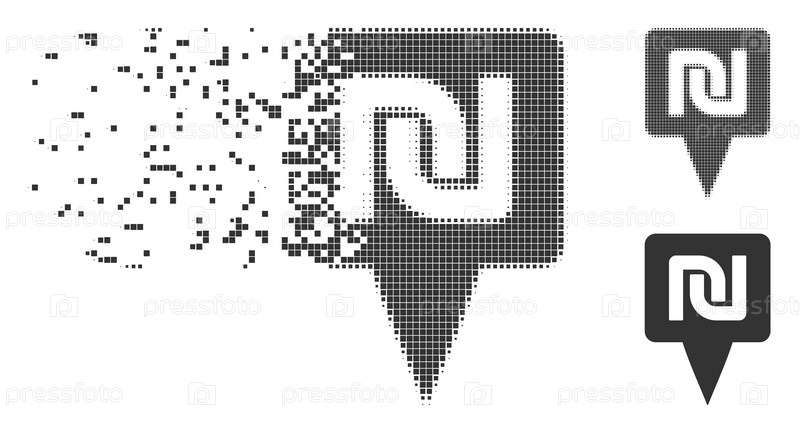 Шекел Карта указатель Фрагментированный пиксель Полутонная икона