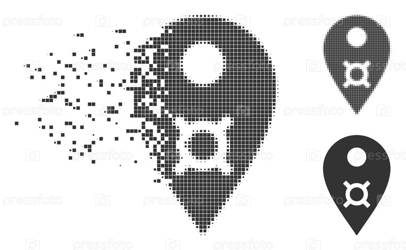 Растворённый маркер валютной карты пунктированная икона с эффектом дезинтеграции. Полутоневые пунктуальные и нетронутые целые варианты серого цвета. Пункты имеют квадратную форму