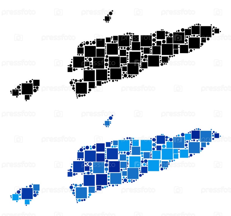 Версии карты Dot East Timour. Абстрактная версия географической схемы, разработанная с синими тонами цвета. Векторная концепция карты Восточного Тимора создана из рассеянных квадратных и круглых точек