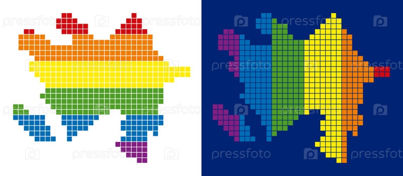 Векторные географические планы в цветах спектра с вертикальными и горизонтальными направлениями на белом и синем фоне
