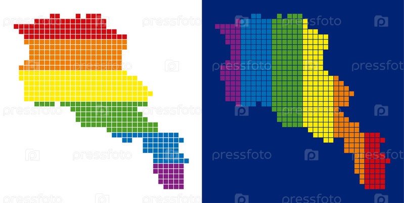 Векторные географические схемы в цветах флага ЛГБТ с вертикальными и горизонтальными направлениями на белом и синем фоне