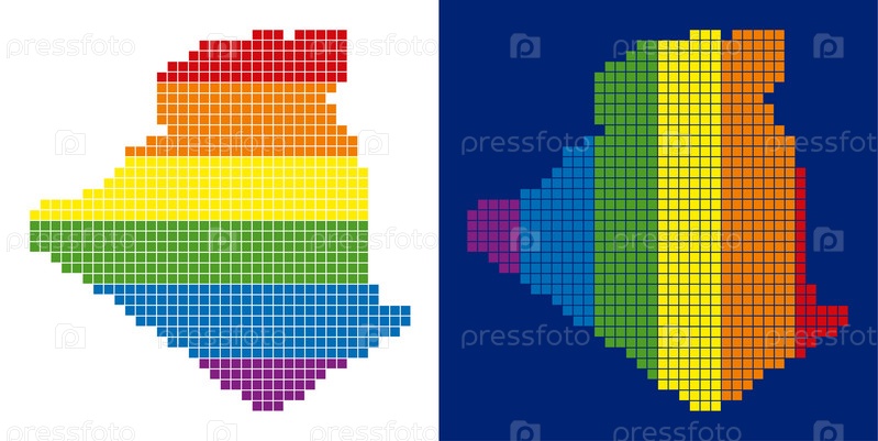 Векторные географические планы в цветах спектра с вертикальными и горизонтальными направлениями на белом и синем фоне