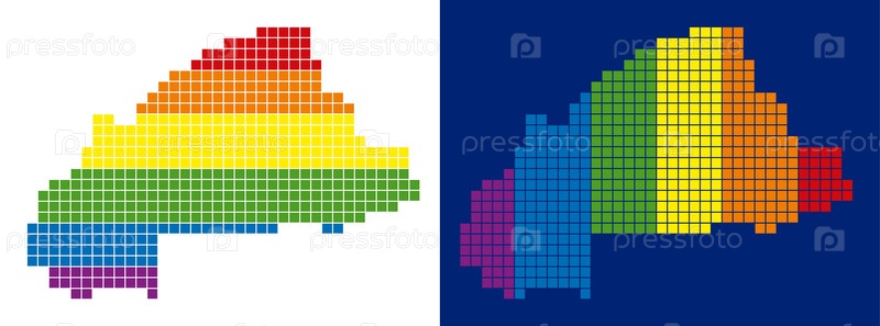 Векторные географические планы в цветах флага ЛГБТ с вертикальными и горизонтальными направлениями на белом и синем фоне