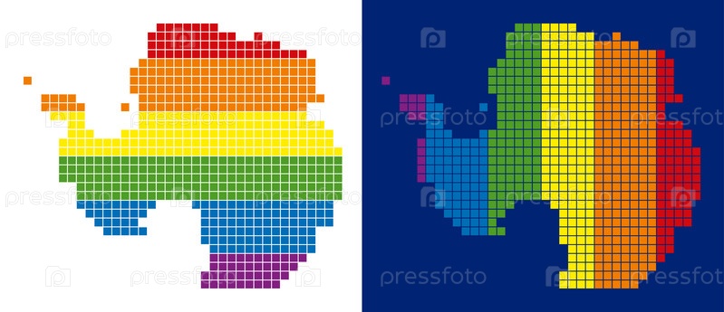 Векторные географические схемы в цветах радуги LGBT с вертикальными и горизонтальными направлениями на белом и синем фоне