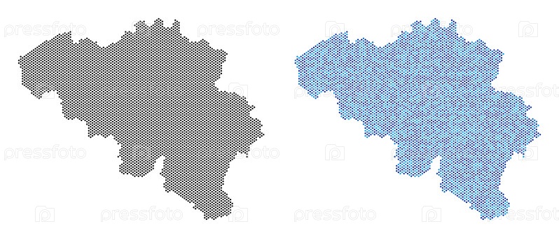 Векторные географические схемы в черном цвете и синих оттенках. абстрактная концепция карты Бельгии, созданной из матрицы с точками круга