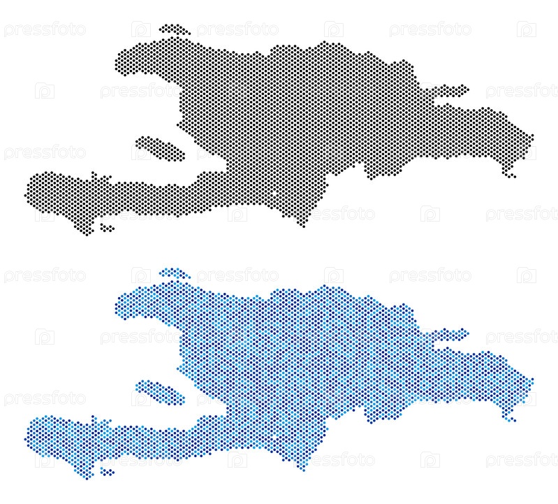 Pixel Гаити и Доминиканская Республика версия карты.Векторные территории планы в черном цвете и холодных синих оттенках цветов