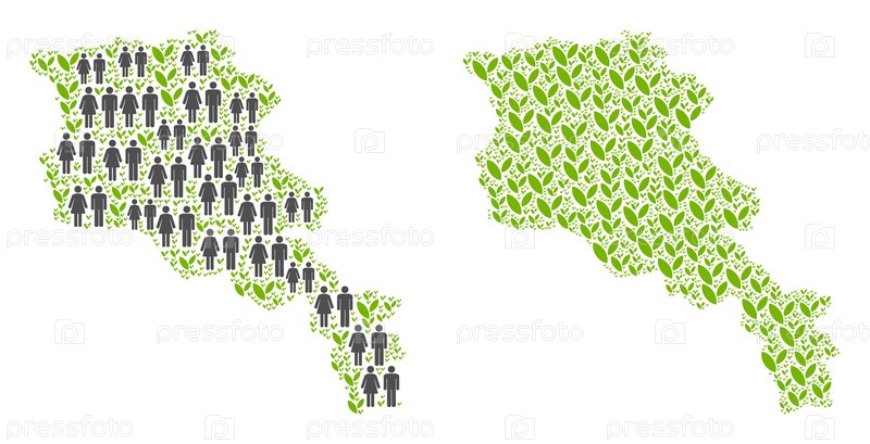 Люди население и экология Карта Армении. Векторный рисунок карты Армении, сформированная из рандомизированной толпы и элементов цветка в разных размерах. Абстрактный социальный план картографии национальных групп