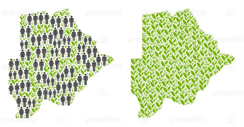 Люди население и окружающая среда Карта Ботсваны. векторная абстракция карты Ботсваны, организованной из разбросанных самцов и самок и элементов побегов в переменных размерах