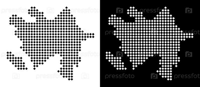 Карта Азербайджана. абстрактные карты территории в черно-белых цветах на белом и чёрном фоне. карта Азербайджана построена из ромбической точки мозаики