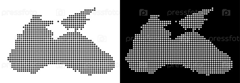 Карта Черного моря. абстрактные карты территории в черно-белых цветах на белом и чёрном фоне. карта Черного моря, разработанная из ромбической точки мозаики