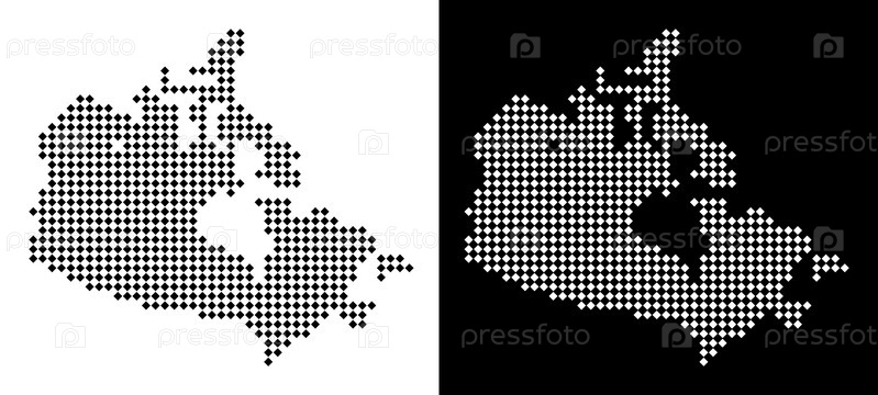 Векторный ромб с точками карта Канады. Абстрактные географические карты в черно-белых цветах на белом и черном фоне. Карта Канады, выполненная из рисунка элементов ромба