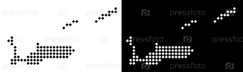 Карта Каймановых островов с векторной ромбической точкой. Абстрактные карты территории в черно-белых цветах на белом и чёрном фоне. Карта Кайманских островов, выполненная из мозаики ромбических элементов