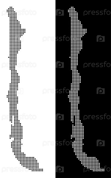 Векторный ромб пиксель Карта Чили. Абстрактные географические карты в черно-белых цветах на белом и черном фоне