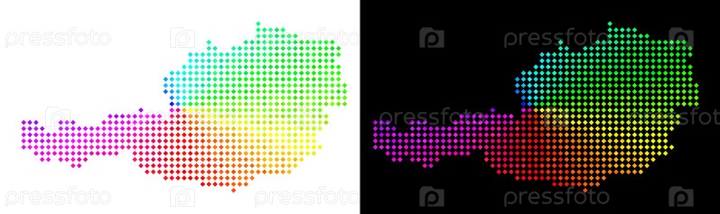 Векторальная географическая схема в ярких цветах спектра с круговым градиентом на белом и черном фоне.Точки имеют форму ромба