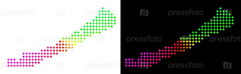 Цветная точка карта озера Балатон. векторная географическая схема в ярких спектральных цветах с круговым градиентом на белом и черном фоне. Пиксели имеют форму ромба