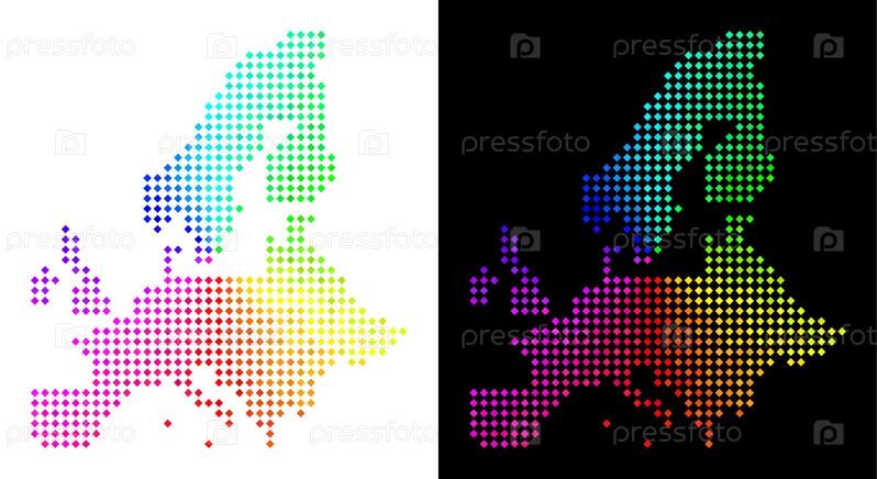 Спектр точки карта Европейского Союза. векторная географическая карта в ярких спектральных цветах с круговым градиентом на белом и черном фоне. Точки имеют ромбическую форму