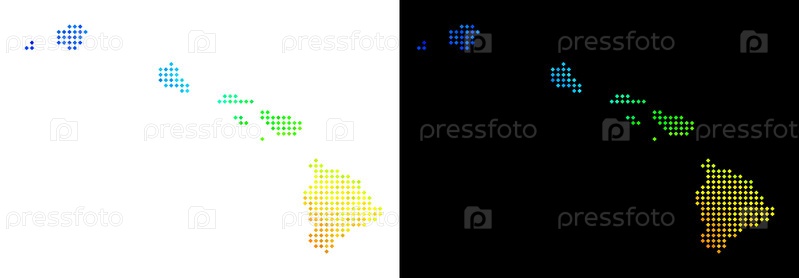 Карта Радужных точек Гавайских островов. Векторный географический план в ярких спектральных цветах с круговым градиентом на белом и черном фоне