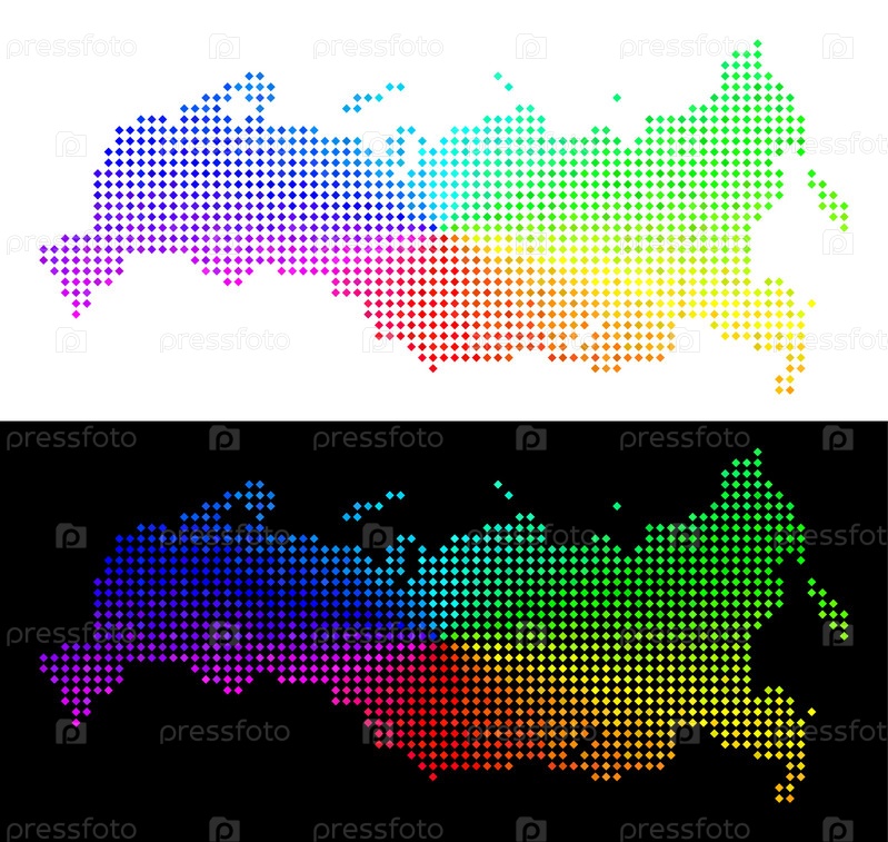 Векторальная территориальная схема в ярких цветах радуги с круглым градиентом на белом и черном фоне.Точки имеют ромбическую форму