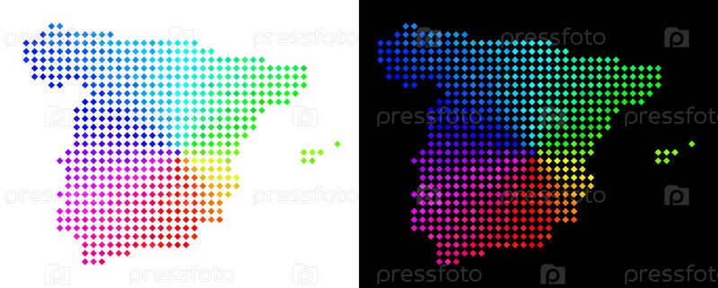Векторальный географический план в ярких спектральных цветах с круговым градиентом на белом и черном фоне.Точки имеют ромбическую форму
