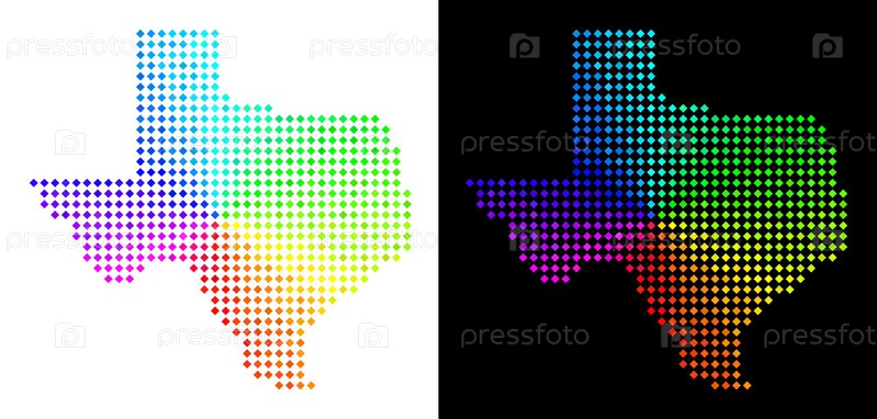 Векторная схема территории в ярких цветах радуги с круговым градиентом на белом и черном фоне.Точки имеют ромбическую форму