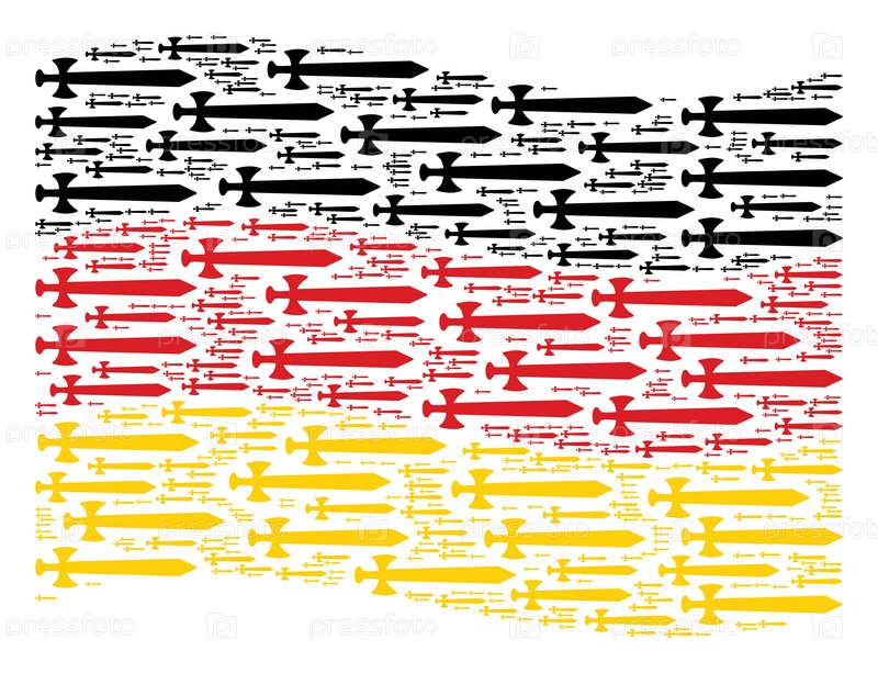 Векторальные элементы средневекового меча разбросаны по мозаике иллюстрации флага Германии Патриотическая композиция, разработанная из плоских пиктограмм средневекового меча