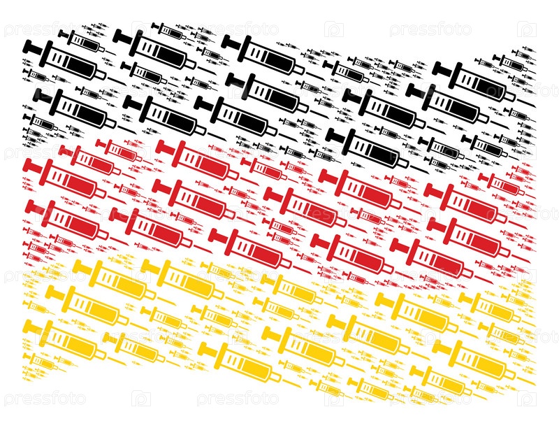 Векторальные элементы шприца сгруппированы в геометрическую абстракцию флага Германии. Патриотическая композиция, созданная из плоских элементов дизайна шприца