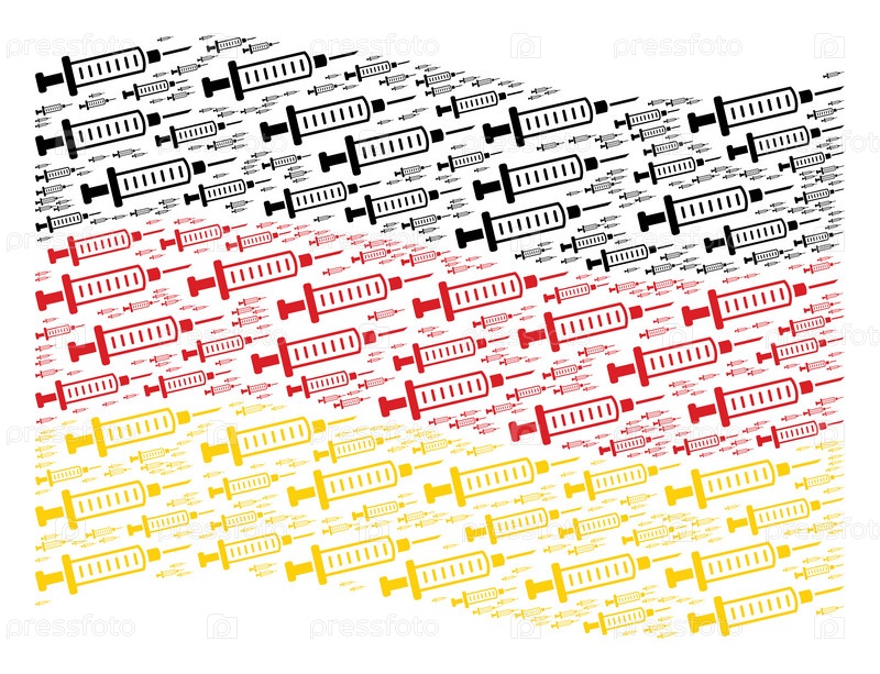 Векторные пиктограммы шприца размещены в геометрическом коллаже немецкого флага Патриотический коллаж, состоящий из плоских икон шприца
