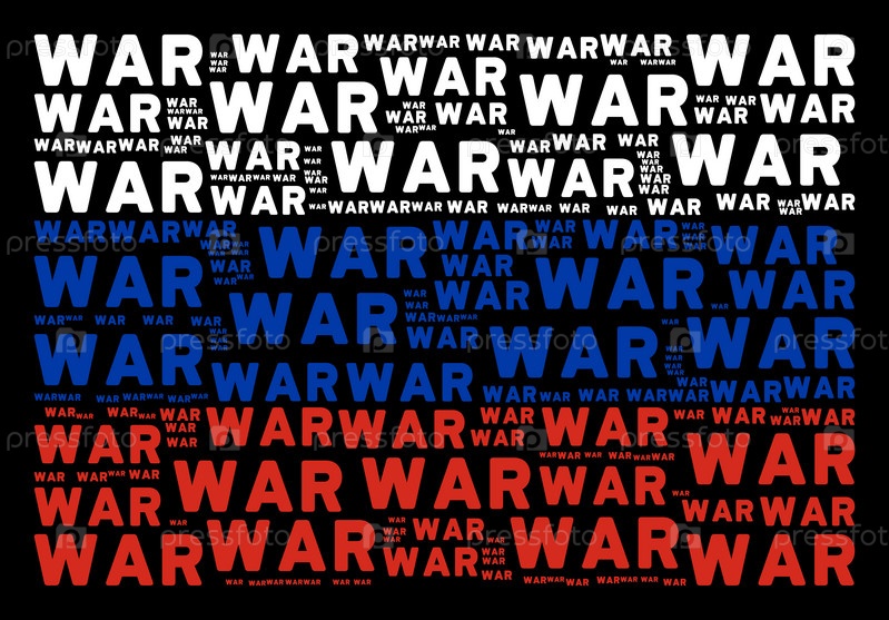 Элементы дизайна векторного текста войны объединяются в мозаичную композицию российского флага
