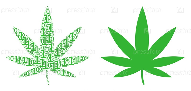 Коллаж конопли из бинарных цифр