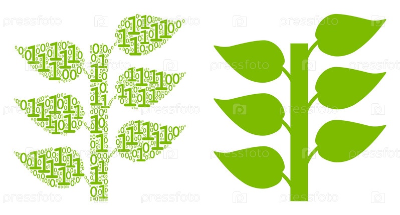 Флора растений Коллаж бинарных цифр