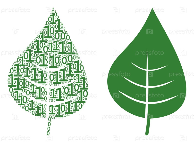 Мозаика из листьев растений с бинарными цифрами