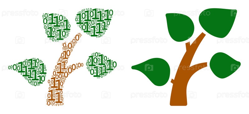 Коллаж бинарных цифр из дерева растений