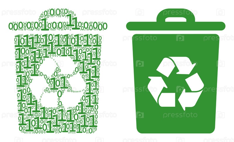 Коллаж бинарных цифр из корзины для переработки