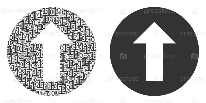 Коллаж с округлыми стрелками бинарных цифр
