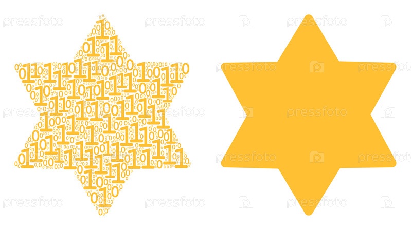 Коллаж из шестиконечных звезд бинарных цифр