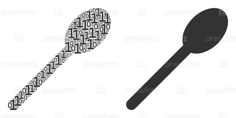 Коллаж ложки бинарных цифр
