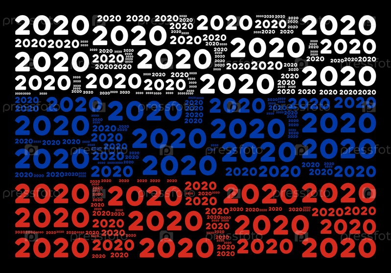 Векторные элементы дизайна текста 2020 года организованы в геометрическую иллюстрацию российского флага