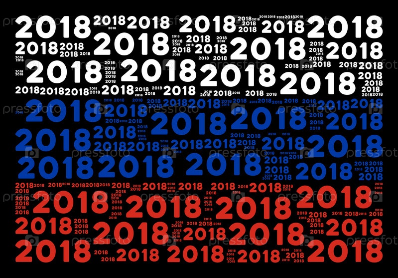 Векторные текстовые элементы 2018 года организованы в концептуальный коллаж российского флага