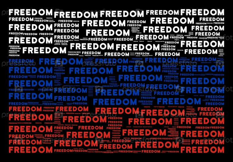 Векторные элементы дизайна слова 'свобода' составлены в концептуальный коллаж российского флага