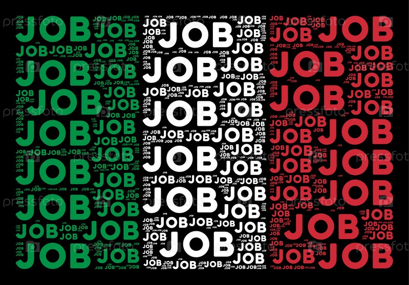 Национальный флаг Италии плоский коллаж, сделанный из текстовых элементов работы на черном фоне.Векторные тексты работ составлены в абстрактную композицию итальянского флага