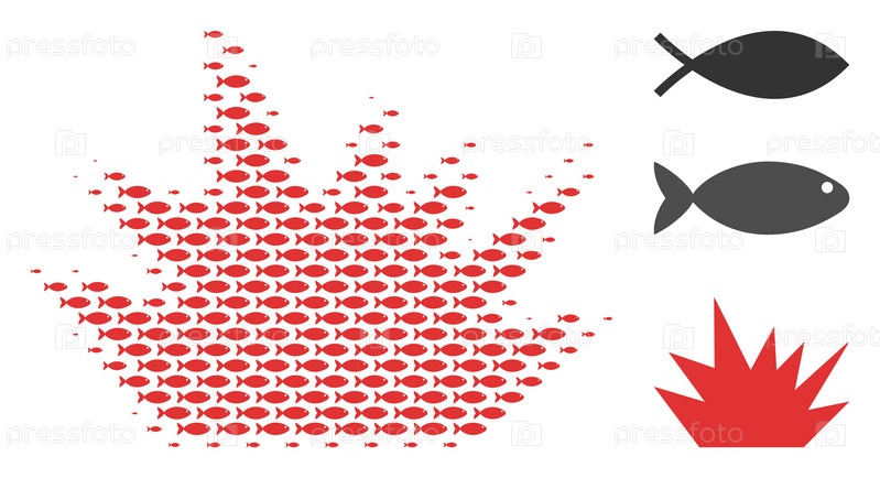 Векторные иконы рыб формируются в мозаику взрыва. Концепция дизайна океана