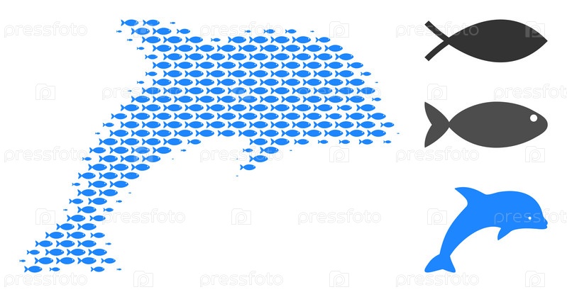 Символы векторных рыб сгруппированы в состав дельфина Концепция дизайна морепродуктов