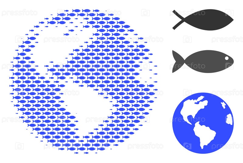 Векторные иконы рыб группируются в земной коллаж Концепция дизайна рыболовства