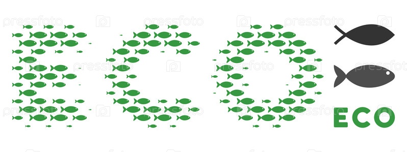 Векторные символы рыб формируются в экотекстовый коллаж. Концепция дизайна рыболовства